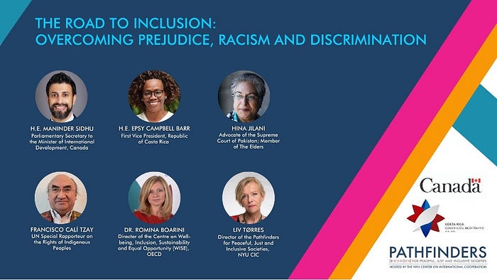 - The Pathfinders also led and partnered in other HLPF side events. Together with the Governments of Canada and Costa Rica, we hosted a high-level dialogue titled “The Road to Inclusion: Overcoming Prejudice, Racism, and Discrimination.”