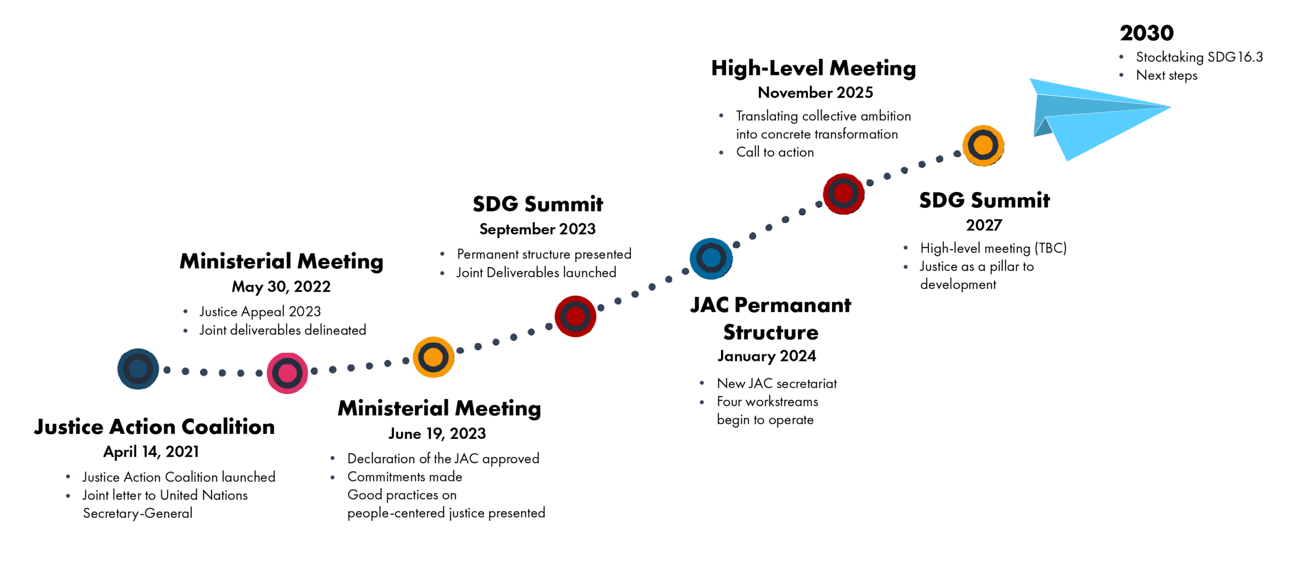 | SDG Summit | September 2023 | The permanent structure of the Justice Action Coalition was presented, and the Joint Deliverables were launched. |